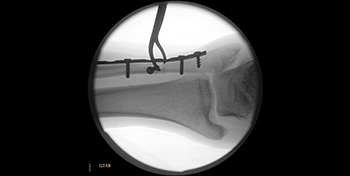 - Day 0 – Fracture reduction using surgical instruments and plate and screws