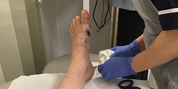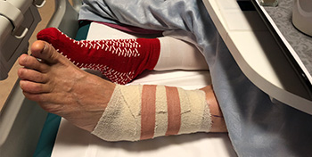 - Day 0 – Just after surgery ready to go home. Soft bandage over the ankle to allow wearing normal shoes