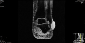 - Ganglion located on the side of the ankle, causing much discomfort during hikes or when wearing ski boots. US aspiration had been unable to fully drain it.