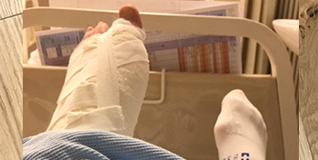 - Day 0 – Leaving the hospital in a cast and crutches.
