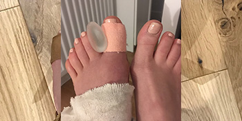 - Week 2 after surgery – Second follow-up appointment. All dressings removed and silicone spacer applied for the next 3 weeks. Transitioning on into normal shoes